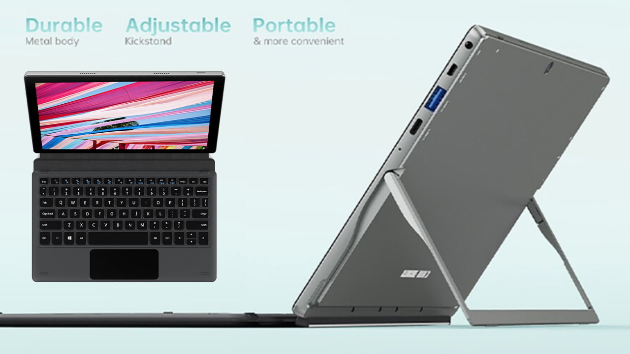 La nueva ALLDOCUBE iWork 20 cuenta con un procesador Intel Celeron N4020, suficiente para realizar trabajos ofimáticos, navegar y ver contenidos multimedia. El cuerpo de esta tablet está realizado en aluminio, incluye un soporte trasero que nos permite ponerla en posición de trabajo y la pantalla es táctil como no podía ser de otra forma. Contamos, eso sí, con solo 4 GB de RAM que podrían ser más generosas como pasa con su rival CHUWI Hi10 Go.