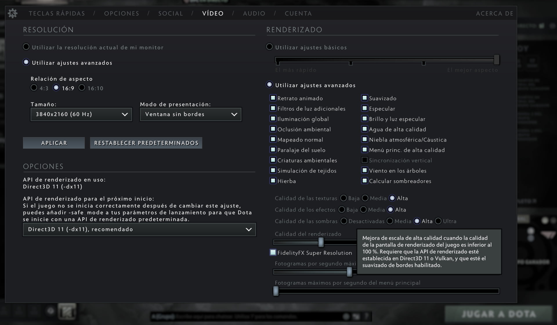 • Ejemplo: Resolución de salida 1080p en modo Calidad el juego se renderiza internamente a 720p