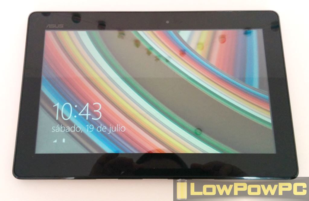 En la parte de tablet tenemos todo el hardware principal de este combo. Las dimensiones son de 263 x 171 x 10.5 mm, pesa 550g, un grosor y peso considerable. Por lo demás la pantalla de 10,1″ IPS en formato 16:9 y resolución 1366×768 tiene buenos colores y brillo, quizás esta sea poca resolución para según que programas. En cuanto a ángulos estamos un poco limitados pero no se hace para nada molesto. En el frontal tenemos también la cámara de video de 1,2Mpx que nos ha funcionado sin problemas con Skype y el sensor de luz. La tablet cuenta también con sensor giroscópico.
