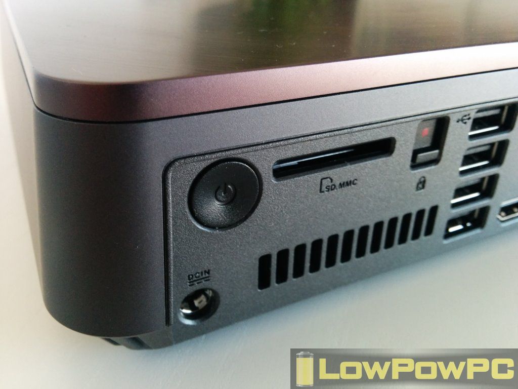 En la parte trasera al lado del lector de tarjetas SD tenemos un botón de dos posiciones con el que podemos liberar la tapa superior y acceder al disco duro y la memoria del sistema por si queremos ampliar el sistema. El disco duro que monta el sistema es el Western Digital Caviar Blue con referencia WD5000AAKX de 500GB de tamaño 3.5″ con interface SATA III a 6GB/s que da un buen rendimiento. Se echa en falta poder incorporarle un pequeño disco mSATA para el OS de forma alternativa.
