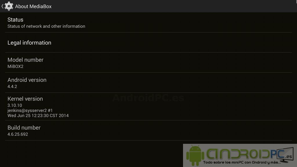 Como podemos ver Mibox Pro trae de serie la última versión del sistema operativo de Android algo que nos dará una vida útil más larga a nuestro dispositivo. Si miramos los ajustes del sistema podemos ver que monta un Kernel 3.10.10 y la versión de la compilación es la 4.6.25.692. El sistema cuenta con un servicio de actualizaciones OTA con el que tendremos el TV-Box siempre a la última.