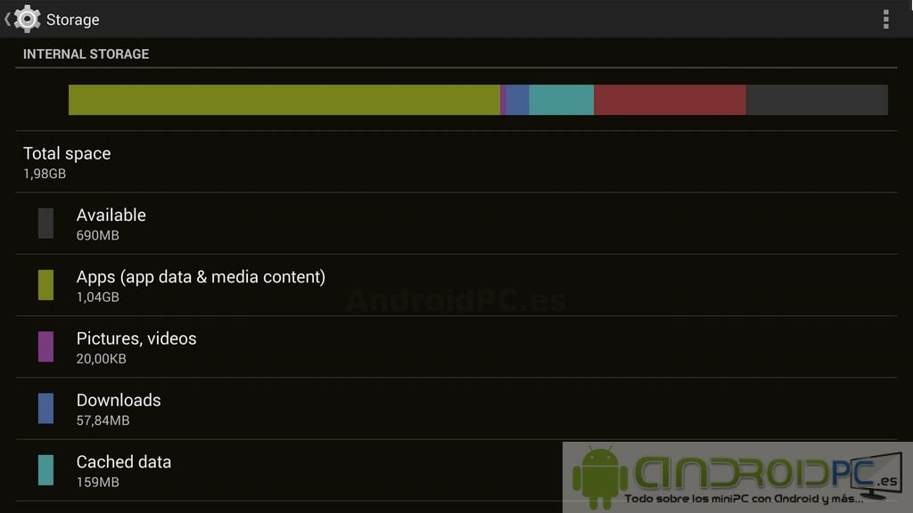 El espacio de almacenamiento siempre es un tanto justo en los dispositivos Mibox, por suerte está bien particionado y de las solo 4GB con las que cuenta el sistema de serie tenemos disponibles 2GB para instalar aplicaciones en la zona de usuario, en nuestro caso tenemos instaladas pocas apps. Un poco justo si queremos instalar juegos grandes o usar el box por su almacenamiento interno. Por suerte en esta versión tenemos lector de tarjetas SD integrado en el TVBox.