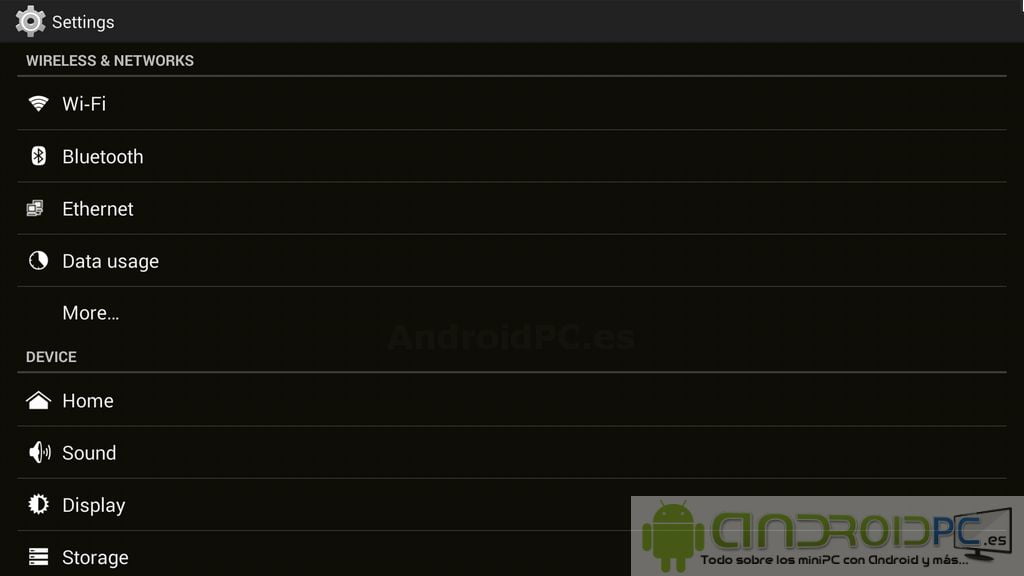 Como hemos comentado esta nueva versión de Mibox no tiene puerto Ethernet de serie pero podemos conectar un dispositivo USB Ethernet y lo detectará sin problemas. El sistema Android está preparado para ello y tenemos en los ajustes del sistema los campos necesarios para configurar todo lo necesario.