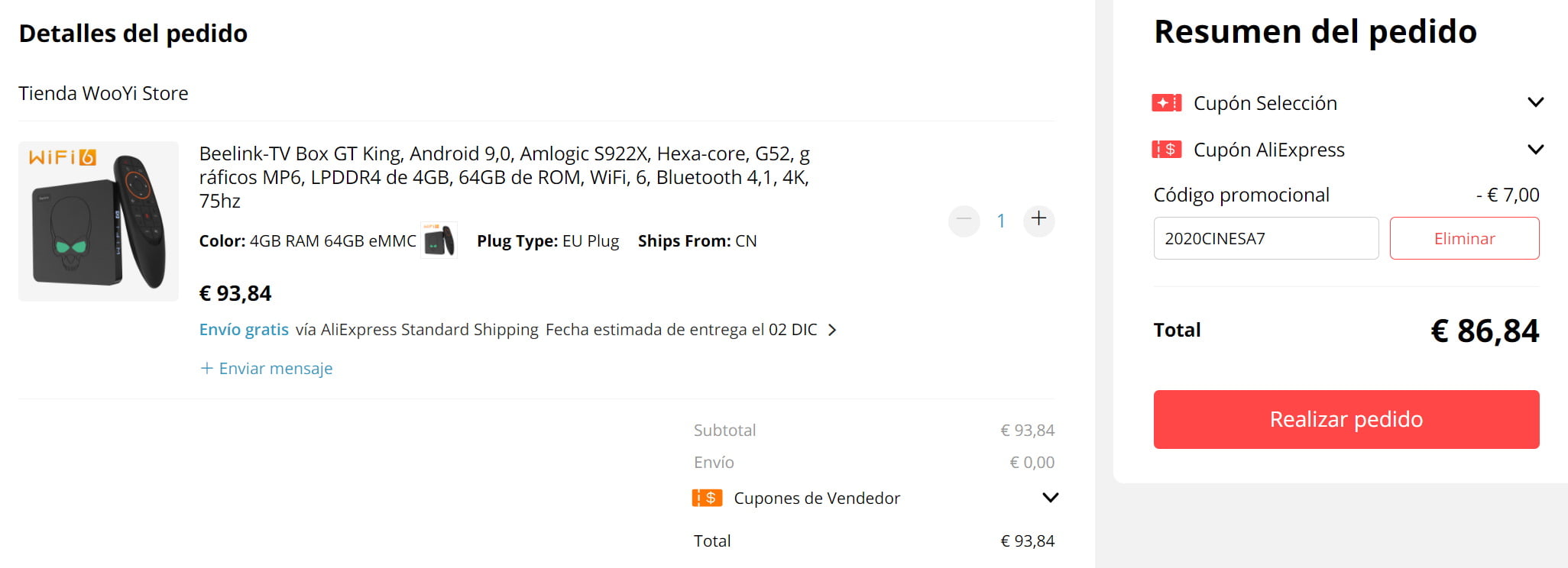 - El Beelink GT-King con Wi-Fi 6 se puede comprar en Aliexprees.com desde 86.84 € ($102.2) usando el cupón 2020CINESA7.
