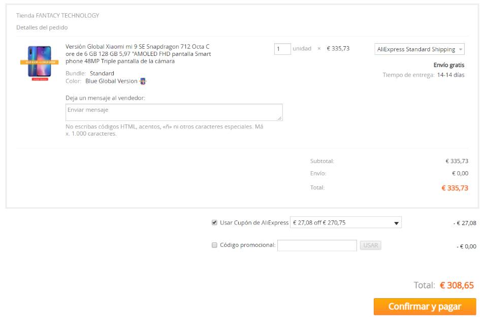 - Xiaomi Mi 9 SE 6/128GB disponible por solo 308,65€ aplicando el cupón de descuento de 30$*