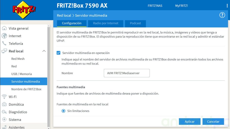 En el apartado de Red Local contamos con interesantes funciones como la Red Mesh para emparejar dispositivos compatible con esta tecnología y expandir nuestra red. En el apartado de USB / Memoria podemos ver los dispositivos de almacenamiento o impresoras conectadas que podemos utilizar como NAS, desde el Servidor multimedia podemos activar las funciones de reproducción UPnP.