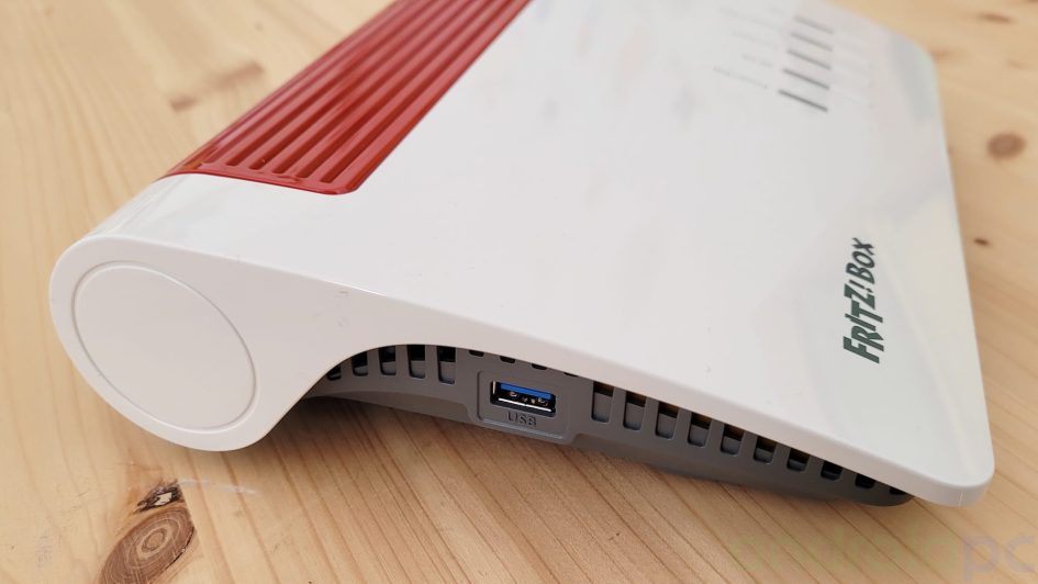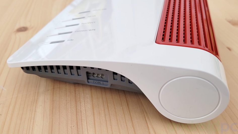 El nuevo Fritz!Box 7590 AX tiene el usual diseño de esta gama de productos de la marca AVM, la carcasa principal tiene unas líneas curvadas y en la zona superior tenemos una rejilla de ventilación en rojo además de los botones con LEDs de estado. Un diseño que no desentona en ningún sitio de la casa y que sin duda es bastante elegante. En los laterales contamos el conector USB 3.0 y el puerto para telefonía FON si lo vamos a necesitar en nuestra instalación.