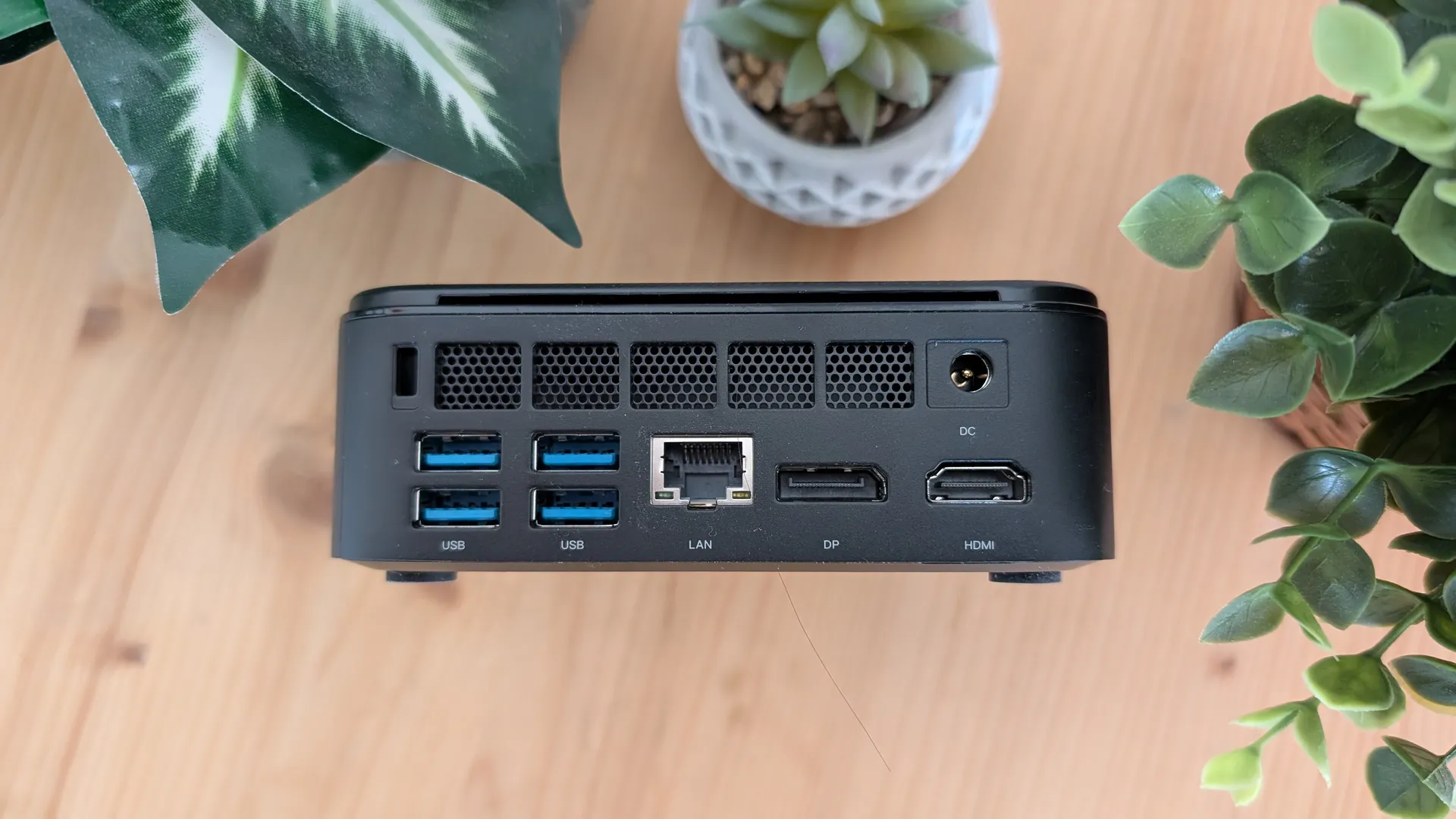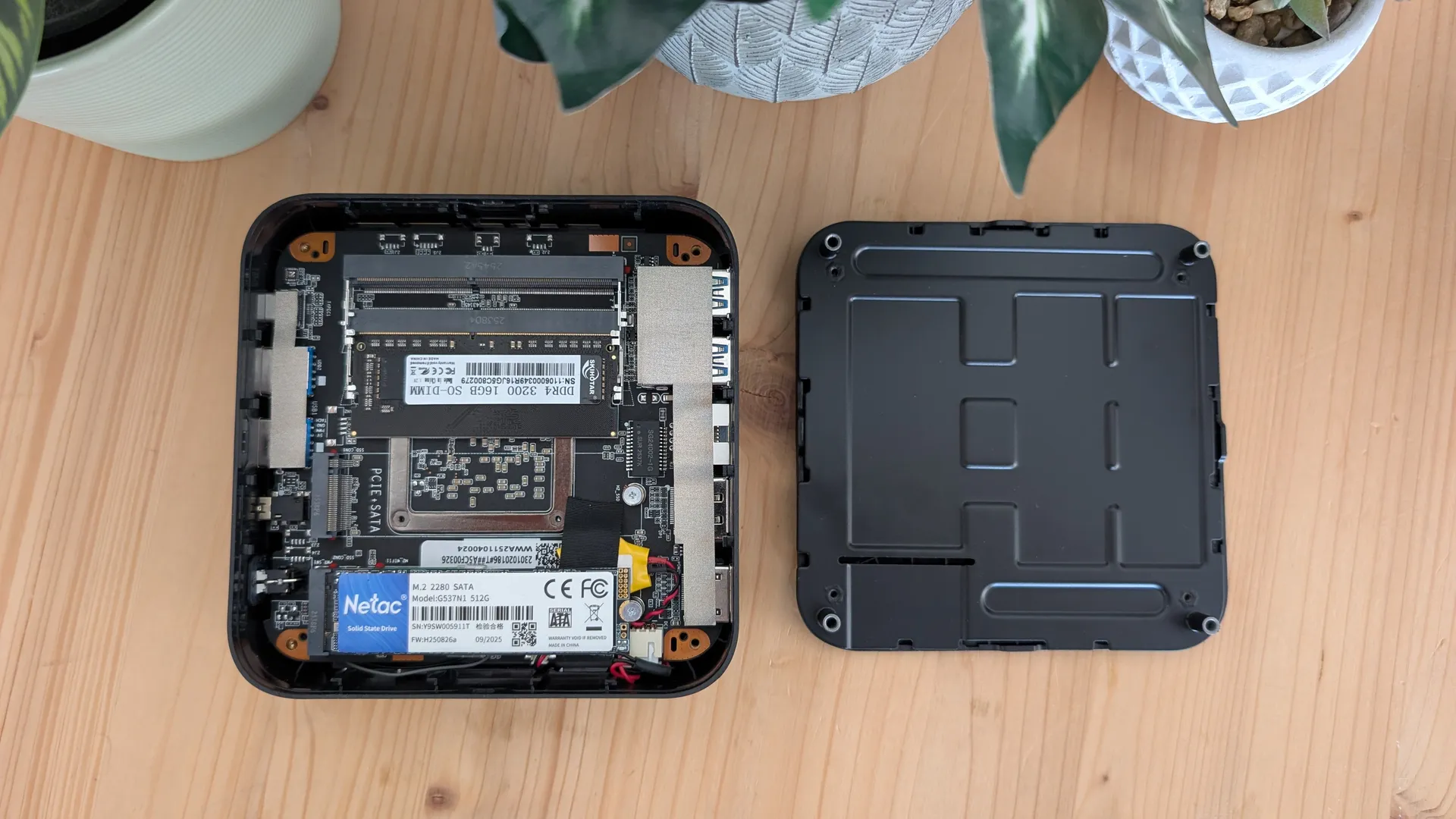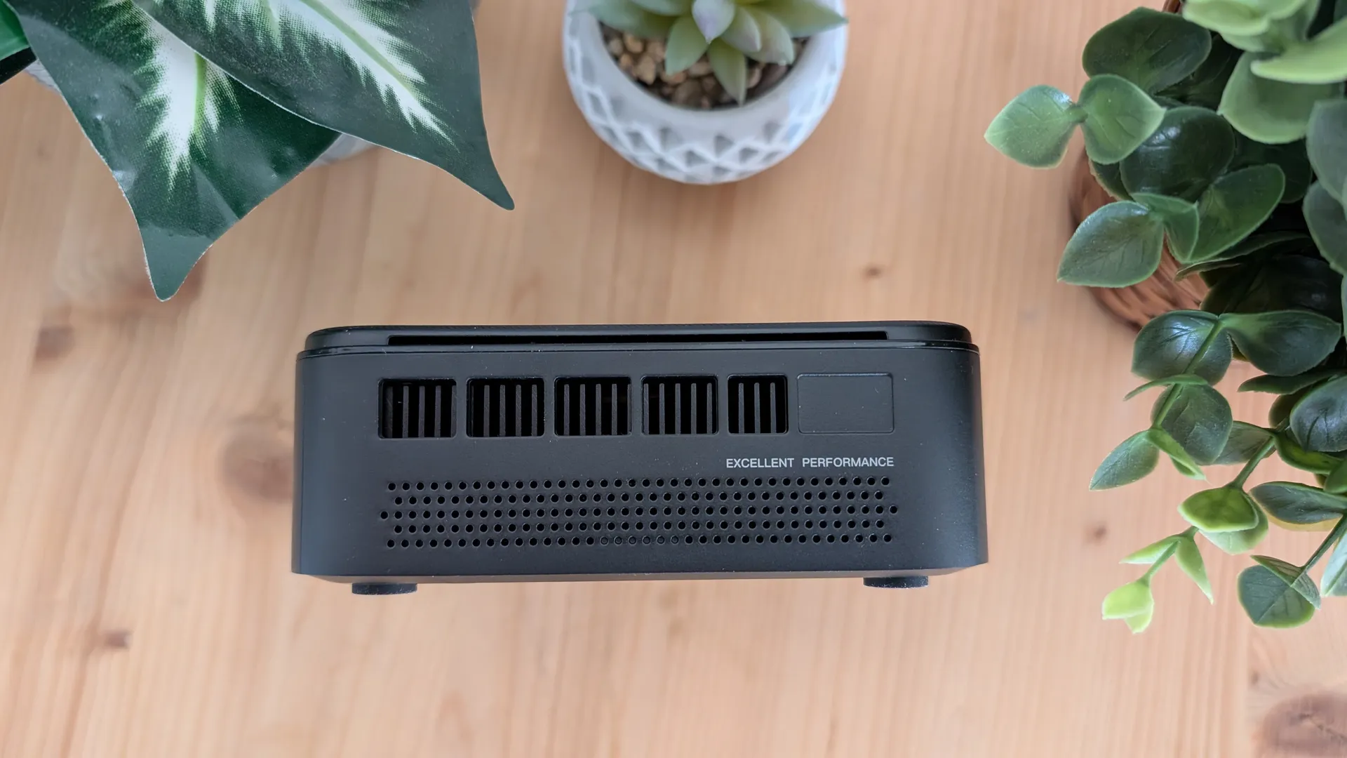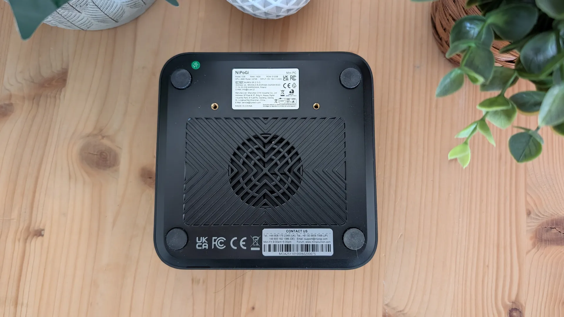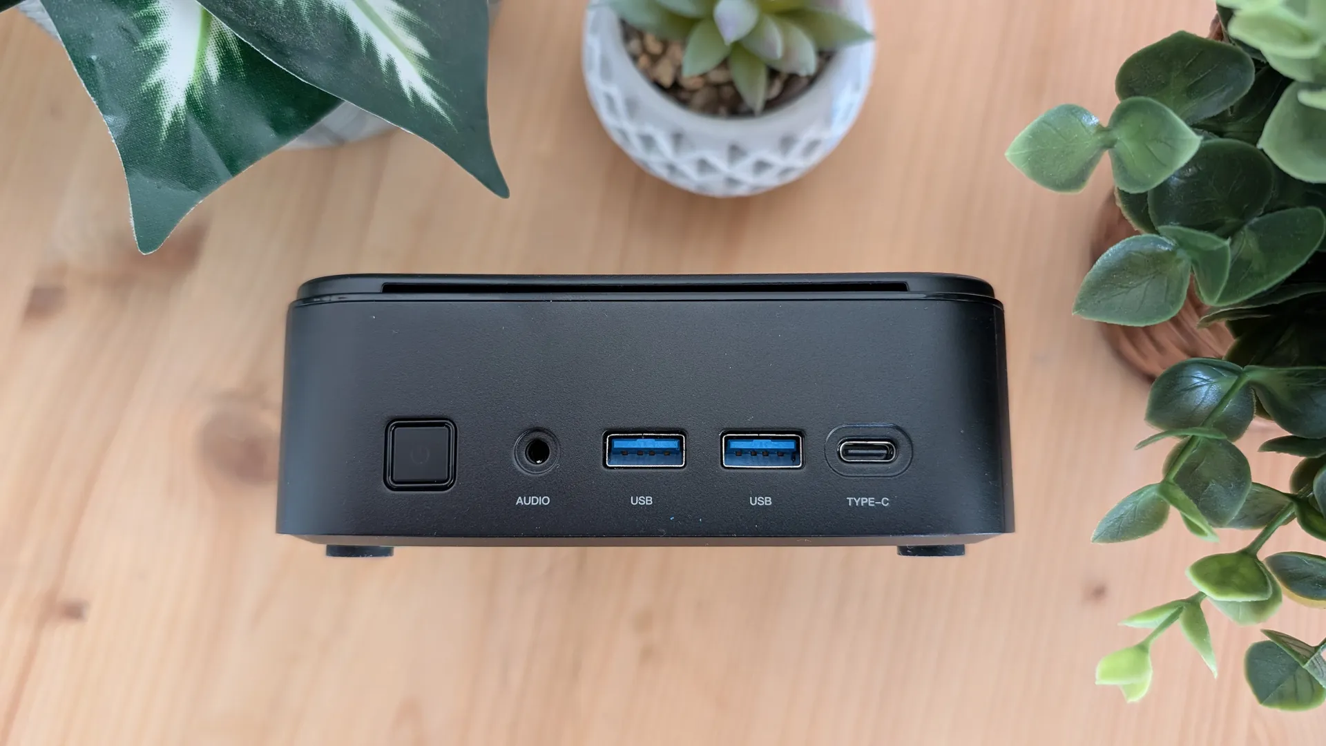 El NIPOGI E3B se presenta con un diseño de caja rectangular muy sobria, la tapa inferior se puede desmontar y dentro tenemos acceso a la RAM y SSD NVMe. Como conectores, destaca en la zona frontal su puerto USB-C con salida de video hasta 10 Gpbs, no es óptima para usar una GPU externa.