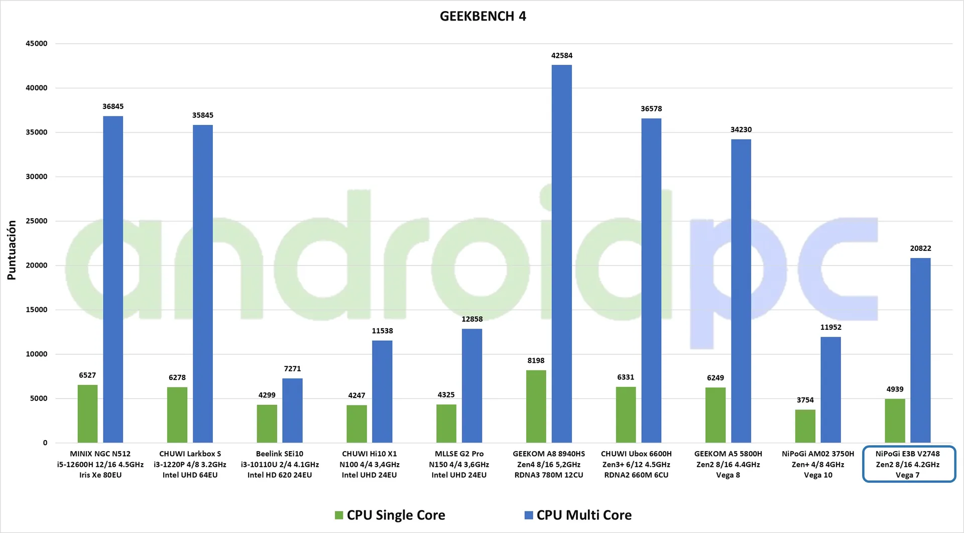 Sin duda, el NIPOGI E3B V2748 es un pequeño ordenador eficiente y potente. Una solución interesante si la encontramos bien de precio, ya que supera a otros procesadores convencionales similares.