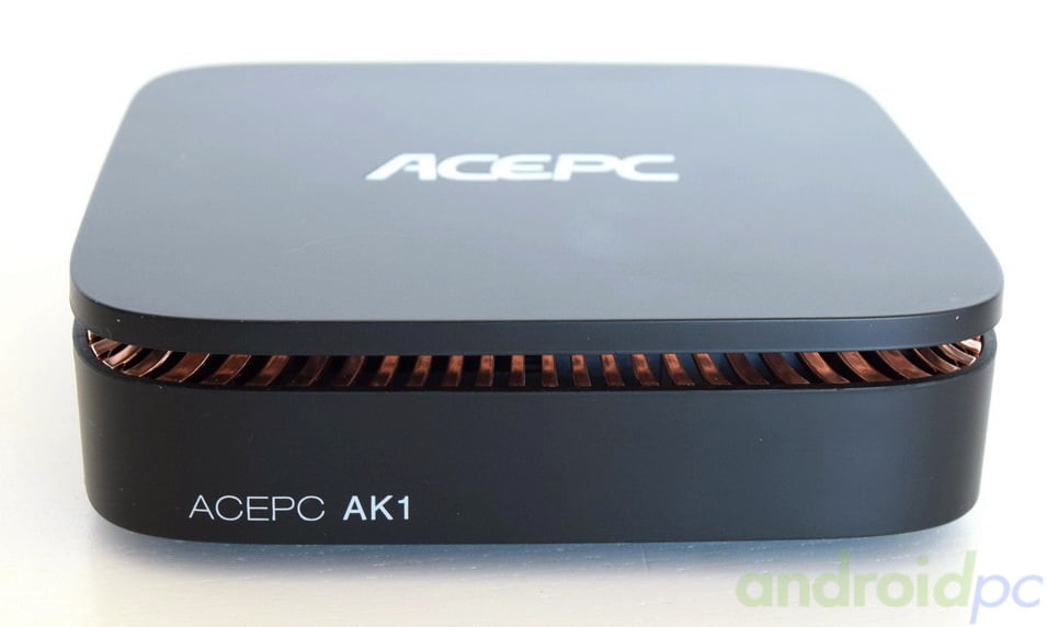 La caja del mini PC ACEPC AK1 está realizada en plástico completamente, la zona superior tenemos unas llamativas ranuras de ventilación que se iluminan con un led azul al ponerse en marcha, si está en reposo es de color rojo, no hemos visto forma de apagarlo.