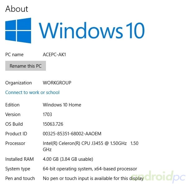Como vemos el sistema instalado es Windows 10 Home 64bit correctamente activado y detecta perfectamente el procesador Intel Celeron J3455 Quad Core con su velocidad de 1,5 GHz, el sistema viene con la versión anterior a la Creators update con lo que tendremos que esperar casi una hora a que se actualice completamen, un proceso que no ha supuesto ningún problema.