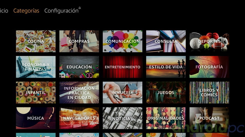 En este dispositivo tenemos como no puede ser de otra forma para instalar apps la Amazon AppStore que nos ofrece una amplia selección de títulos, algo que echamos en falta es la opción de búsqueda, es casi mas fácil buscar en la web de Amazon e instalar el app desde alli que directamente en el Fire TV. Si nos parece limitada en oferta siempre podemos instalar usando su apk la tienda alternativa Aptoide donde podemos instalar por ejemplo KODI o otras apps que están fuera de Amazon.