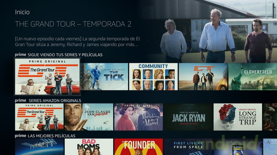 El sistema de usuario del Fire TV Basic Edition cuenta con el diseño de FireOS 6, tenemos diferentes filas con las categorías que agrupan el contenido aunque muchos de ellos se repiten bastante. La personalización es casi nula y como en el sistema Android TV no tenemos barra inferior o zona de notificaciones.