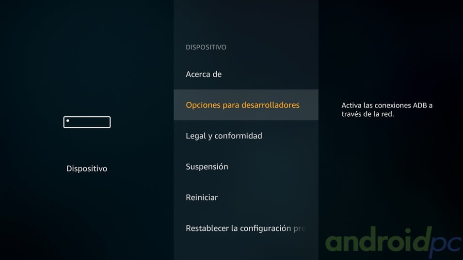 Si entramos en el apartado Dispositivo tenemos unos puntos importantes, en el primer apartador Acerca del dispositivo podemos ver la versión de software, en el apartado de Opciones de Desarrollo contamos con la opción de activar el ADB o instalar aplicaciones de fuentes desconocidas desde ficheros APK.