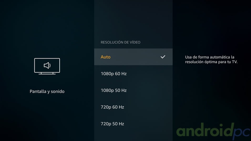 En el Fire TV Basic Edition contamos con el SoC MediaTek MT8127D un procesador que tiene soporte de salida de vídeo por HDMI 1.4 lo que nos da opción a poder ver contenidos con una resolución máxima de 1080@60MHz , es un chip que no está diseñado para HDR o 10bit de color. En este sistema no hay opción de ajuste de refresco automático a nivel global pero en KODI o SPMC podremos configurarlo, algo que sería interesante ya que nos evita reproducir contenidos con el molesto efecto Judder. Tampoco tenemos modo RGB o menús de control de calidad de imagen para Brillo, Contraste o Saturación, un sistema bastante básico en este aspecto.