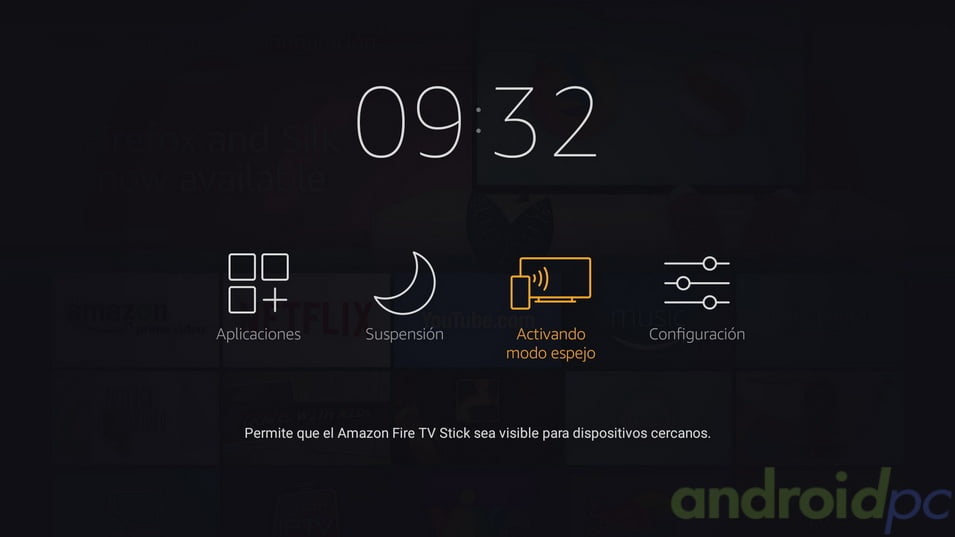 Si dejamos apretando el botón inicio del mando tenemos acceso al Modo Espejo que es básicamente Miracast, podemos conectar nuestro móvil Android al Fire TV y ver la imagen en pantalla, como siempre los resultados son variables dependiendo de muchos factores, en general se comporta bien pero notamos algo de retraso.