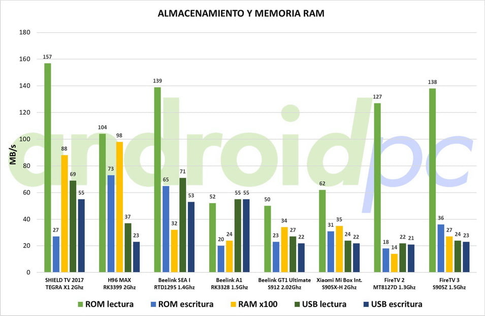 Pasamos nuestros test a la memoria y almacenamiento interno en el Fire TV 3 usando el app SD bench que nos da unas cifras excelente como podemos ver, unos datos que se reflejan en lo fluido que se mueve el dispositivo.