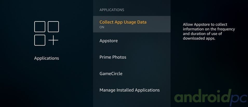Dentro de Aplicaciones también tenemos opciones de nuestra cuenta de Appstore, Prime Photos, GameCircle y gestor de aplicaciones instaladas donde podemos desinstalarlas.