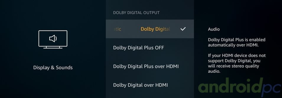 El Fire TV 3 cuenta con un SoC Amlogic S905Z, este es un procesador que oficialmente SI está licenciado para el uso de audio pass through para DD y DTS. Para la pruebas de sonido utilizamos nuestro receptor AV Yamaha RXV-577 y comprobamos que en el dispositivo disponemos de audio pass through para DD y DTS hasta 7.1 aunque el sistema no nos muestra información concreta de la salida de audio, parece que si es compatible con todos los formatos.