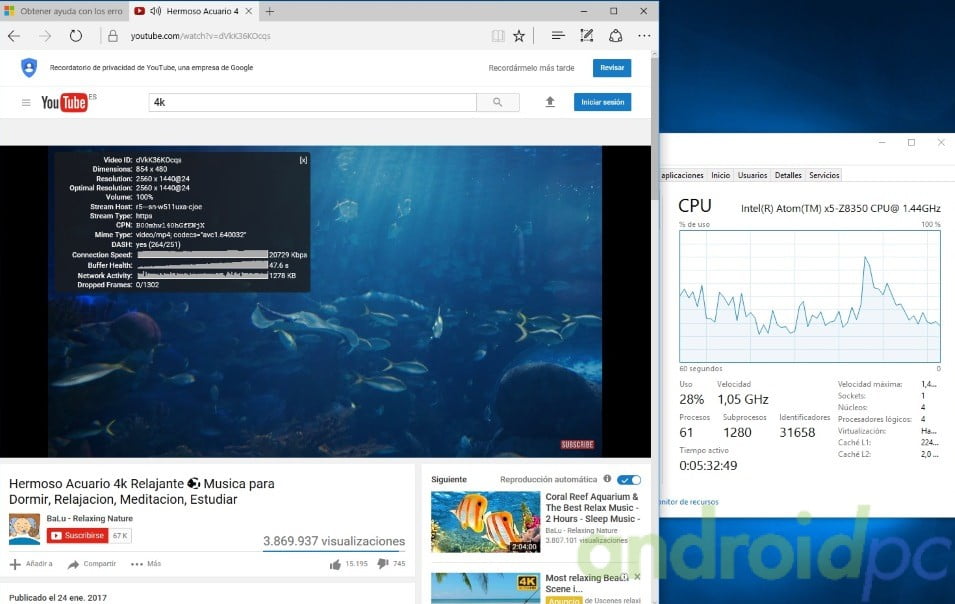 Reproducimos contenidos streaming sobre el Beelink BT3 Pro en los medios habituales como Youtube o TV Nacionales y comprobamos que no tenemos problemas al reproducir videos. En Youtube podemos reproducir contenidos con el códec VP9 de forma bastante correcta hasta 4K, aunque si buscamos mejor rendimiento es mejor usar otro codec.