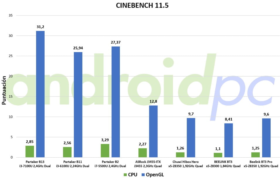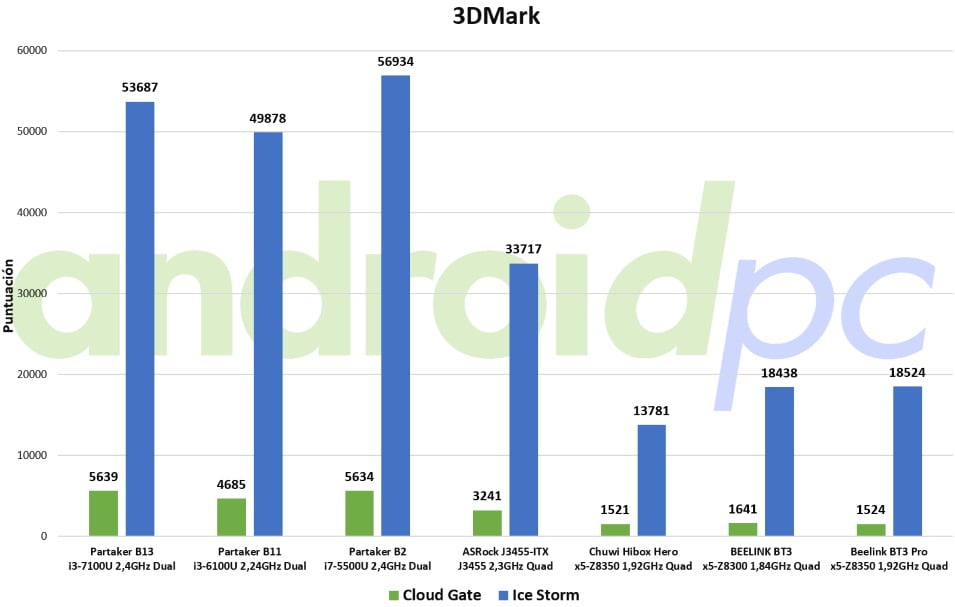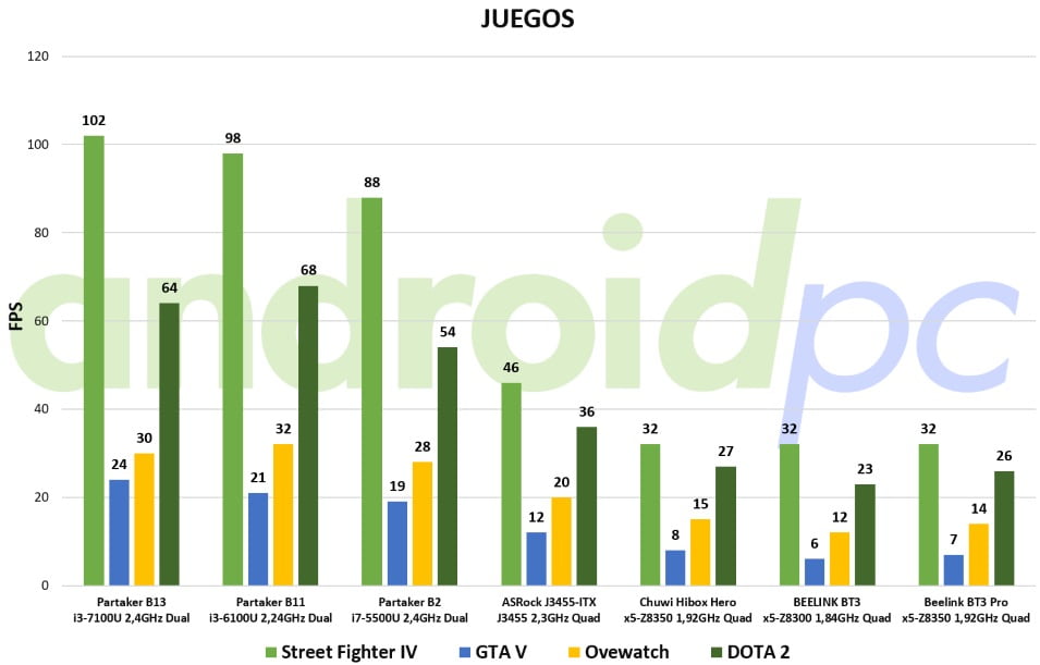 Hemos realizado varios test de rendimiento para nuestro analisis sobre el Beelink BT3 Pro que integra una GPU Intel HD Graphics 400 Gen8 con 12EU (Execution Units). El rendimiento es correcto para jugar a títulos muy sencillos, como ya hemos visto con este hardware vamos a estar limitados en la mayoría de los casos a juegos 2D y con efectos 3D básicos, un sistema que como es lógico no puede mover títulos modernos o exigentes.