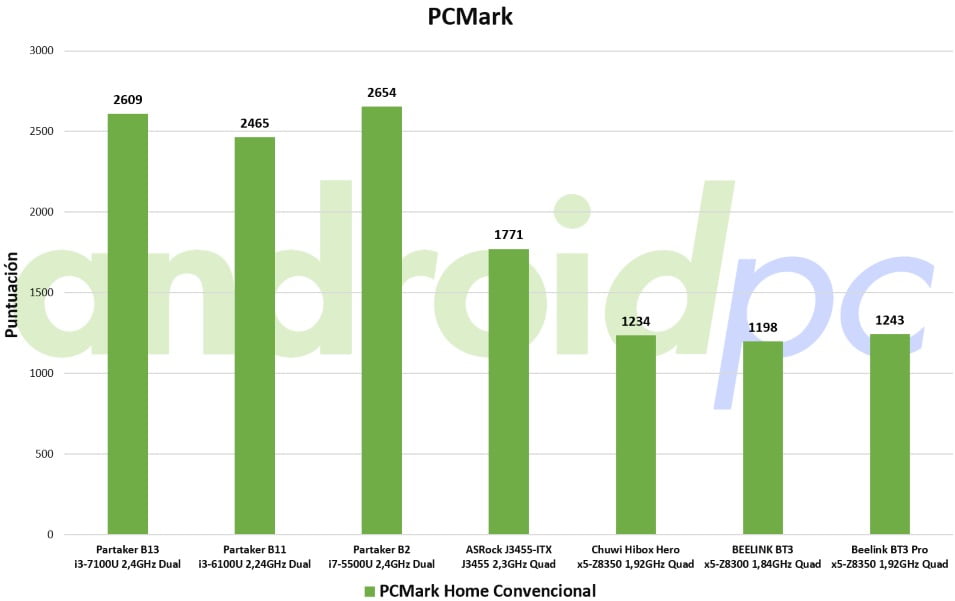 Con este test podemos ver el rendimiento del dispositivo en un entorno ofimática y de uso común en escritorio.