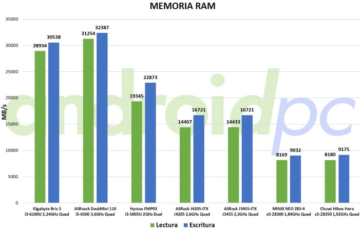 El rendimiento que podemos ver en los datos que la velocidad de la memoria RAM es similar a otros modelos que hemos analizado, unos valores totalmente correctos.