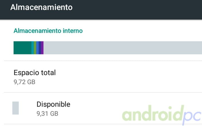 El sistema Android como podemos ver en los ajustes tenemos un total de 9,7GB de los que se nos quedan libres casi 9,3GB, una cifra bastante generosa en los dos sistemas comparado con los modelos de sólo 32GB de almacenamiento.