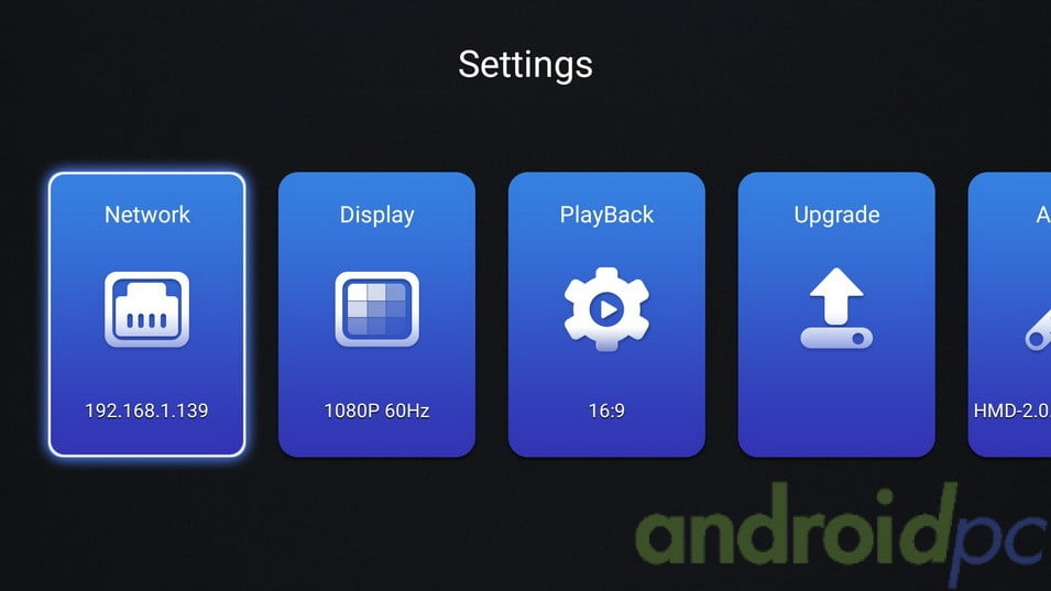 En el HIMEDIA Q30 tenemos un acceso directos una serie de ajustes simplificados que nos presentan las funciones básicas del TV-Box de forma sencilla, podemos ajustar el sistema de red, pantalla, reproductor, actualizaciones y otras opciones que veremos a continuación.