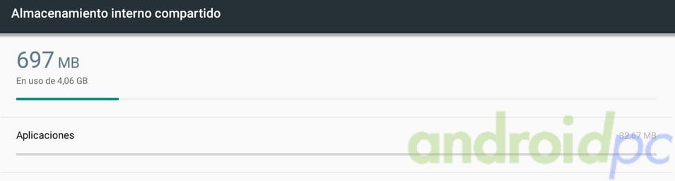 Tenemos en el HIMEDIA Q30 un total de 8 GB de memoria de almacenamiento eMMc, de esta memoria de almacenamiento tenemos disponibles realmente unos 4 GB, una cifra bastante baja que podemos suplir instalando una tarjeta SD para ampliar el almacenamiento interno gracias a que contamos con Android 7.0.