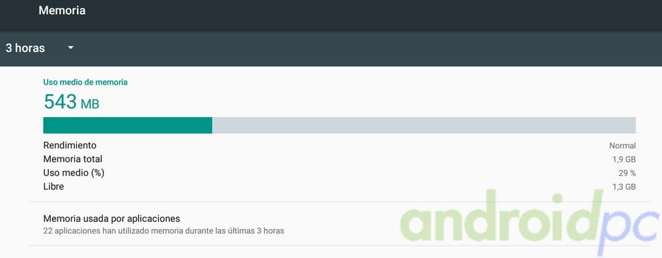 Integradas en la placa tenemos 2 GB de memoria RAM DDR3 que se comportan con normalidad, de esta cantidad nos quedan disponibles unos 1,3 GB de forma habitual lo que nos permite abrir varias apps o pestañas de nuestro navegador de internet.