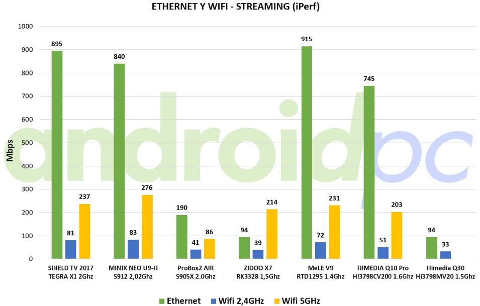 Poniendo a prueba los adaptadores de red en uso de streaming utilizamos la herramienta de medición iPerf con la que tenemos la velocidad máxima de conexión en cada tipo de red. Con esta cifra tenemos hasta dónde podemos llegar usando las conexiones disponibles, el rendimiento final dependerá de nuestro proveedor de internet, la velocidad contratada, la distancia de nuestra red wifi, cableado Ethernet y otros factores. Los resultados son correctos pero limitados por los adaptadores instalados en el hardware.