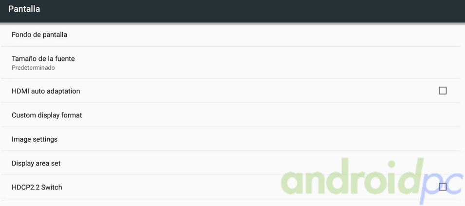Dentro de las opciones de pantalla en Android tenemos una opción para activar el servicio HDCP 2.2 lo que nos da compatibilidad con diferentes servicios DRM, por desgracia como hemos comprobado esto no tiene efecto en Netflix o HBO donde se repite la habitual historia que encontramos en los TV-Box chinos como veremos en nuestra seccion de servicios streaming de este analisis.