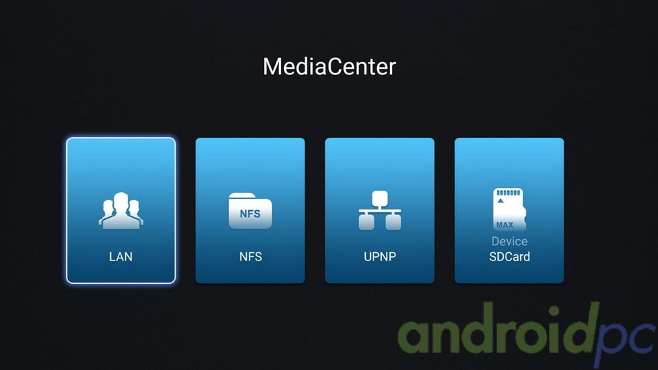 En la lista de los app instalados por defecto en el HIMEDIA Q30 hay que destacar el Centro multimedia que nos permite buscar en nuestras unidades locales o de red archivos multimedia de forma bastante cómoda y efectiva.