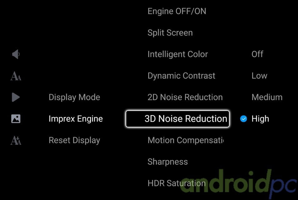 Este modelo como decimos cuenta con un procesador específico dedicado al procesado de la imagen, podemos acceder a las mejoras de este sistema Imprex 2.0 usando el reproductor nativo de Himedia pulsando la opción menú. Con los controles podemos ajustar en bastantes aspectos la calidad de imagen, sin duda muy interesante para los que quieran sacarle el máximo provecho a su biblioteca multimedia.