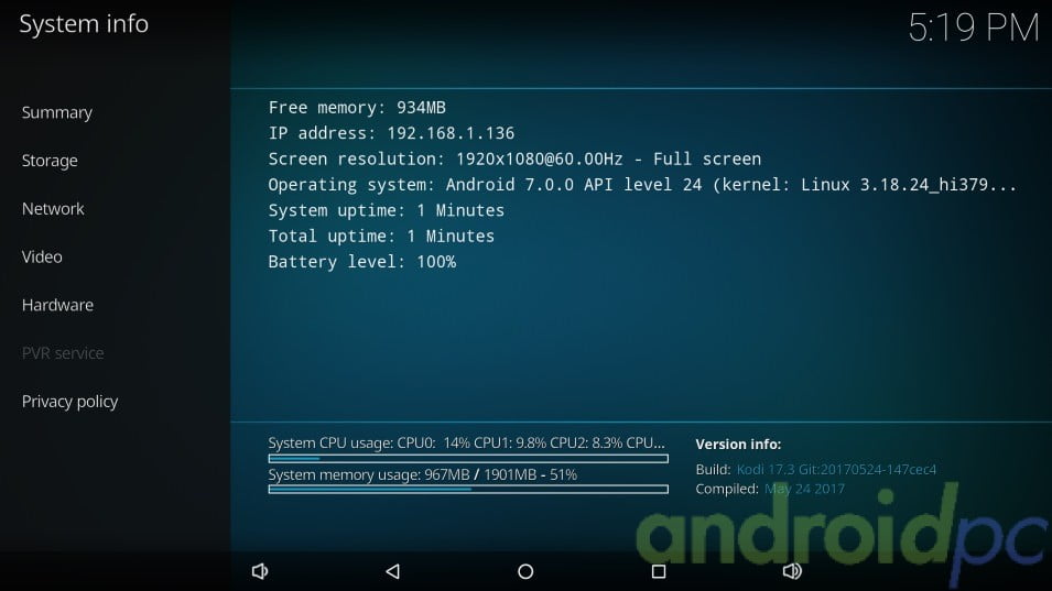 De serie con el sistema tenemos instalado Kodi 17.3 nativo un sistema que como veremos tiene varias opciones que nos permiten jugar entre diferentes modos de configuración, en todo caso podemos cambiar por ejemplo el reproductor interno por el nativo.