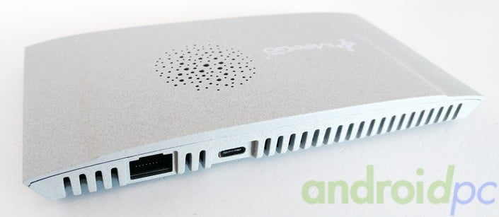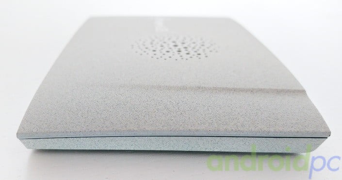 Como vemos el lateral del miniPC es muy compacto, en la parte superior tenemos unas perforaciones para el ventilador interno que sirve para refrigerar la CPU.