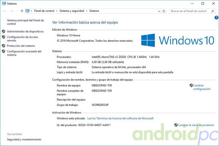Comprobamos que tenemos instalado de serie Windows 10 Home 64bit. El sistema cumple explícitamente con las normativas de Microsoft y en nuestro caso tiene su licencia activada correctamente.