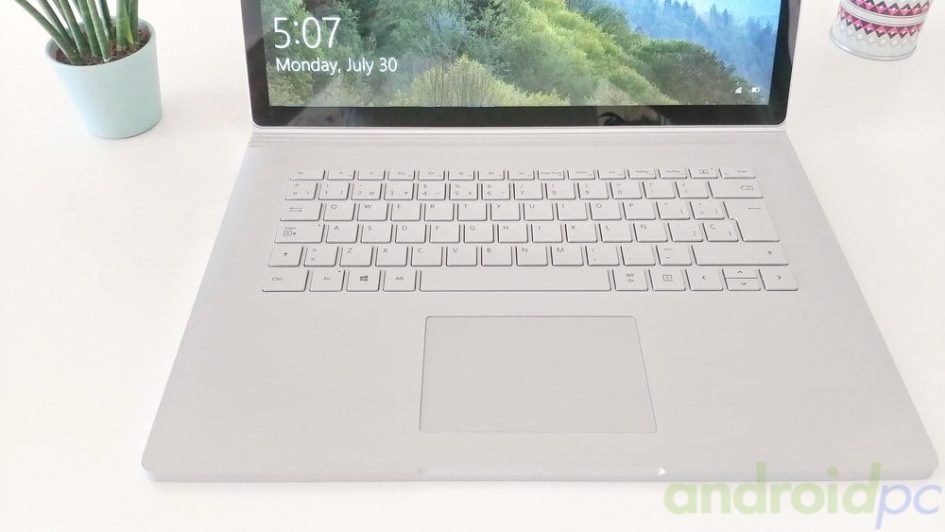 El teclado del Microsoft Surface Book 2 tiene un tacto excelente, cuenta con un sistema de iluminación eficiente pero que en ambientes iluminado hace que la teclas sean casi invisibles, recomendamos desactivarlo si no estamos en un ambiente oscuro para ahorrar bateria, hay una tecla para ello. En el frontal tenemos un trakpad con un muy buen tacto pero algo pequeño para todo el area libre que tenemos disponible.