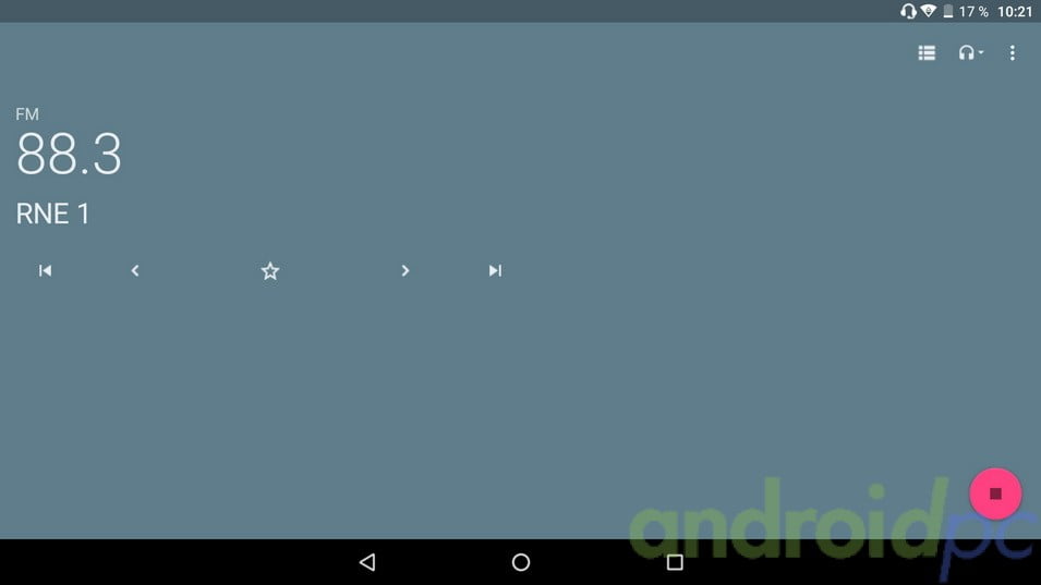 En el apartado de radio FM de serie viene una aplicación bastante básica pero que funciona correctamente, podemos escanear la frecuencias de nuestra zona y guardar en unos accesos directos nuestras emisoras preferidas. Es necesario conectar unos auriculares externos para que funcione la radio aunque sea con los altavoces internos.