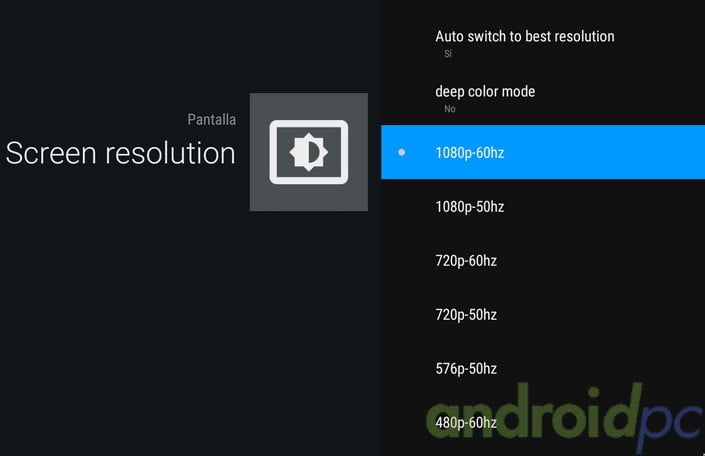 Si conectamos este dispositivo a un TV compatible tenemos en la lista 720p, 1080p y llegamos hasta resolución 4K, entre estos modos se encuentran los de 24p para sincronizarse con los modo cine. Como es habitual en este tipo de SoC faltan controles de brillo, contraste y gamma.