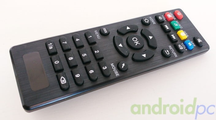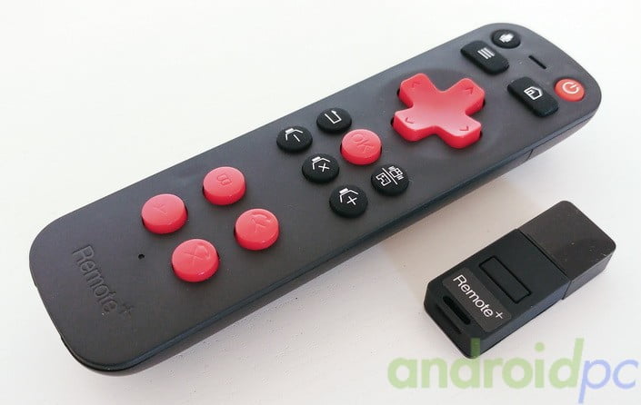 De forma opcional tenemos el mando Remote+ un Fly Mouse que incorpora micrófono, que se alimenta con 2 pilas AAA y se comunica con el TV-Box mediante un adaptador USB incluido. Dispone de 4 modos de funcionamiento que se activan pulsando una tecla que tenemos en el mando. Tenemos modo mando a distancia IR, Fly Mouse, modo juego horizontal y modo juego vertical. Sin embargo echamos en falta un indicador que nos señale en qué modo estamos en cada momento. A nivel de Fly Mouse el Remote+ es bastante bueno, buena sensibilidad, rapidez y además dispone de algún botón de acceso directo de Android. Con los modos de juego correremos la misma suerte que si tuviéramos un gamepad, muchos juegos son compatibles y otros no, la tónica habitual en Android donde la mayoría de juegos están pensados para controles táctiles.
