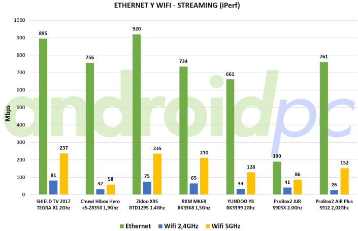 Poniendo a prueba los adaptadores de red en uso de streaming utilizamos la herramienta de medición iPerf con la que tenemos la velocidad máxima de conexión en cada tipo de red. Con esta cifra tenemos hasta dónde podemos llegar usando las conexiones disponibles, el rendimiento final dependerá de nuestro proveedor de internet, la velocidad contratada, la distancia de nuestra red wifi, cableado Ethernet y otros factores.