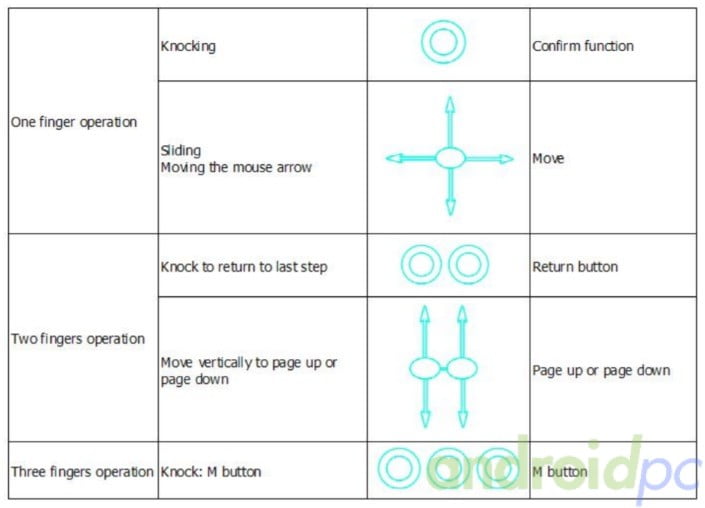 Este manel admite gestos con varios dedos, podemos hacer scroll vertical, retroceder en android o simular el botón menu si pulsamos con tres dedo en la pantalla.