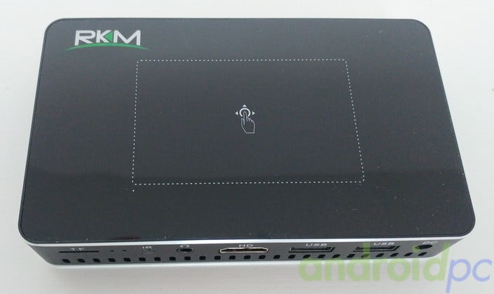 En la cara superior del RKM R1 contamos con una de sus peculiaridades, un panel multitáctil que nos permite controlar el sistema, este panel es bastante delicado y cuando movamos el sistema seguro que ejecutamos algún icono del escritorio de Android.