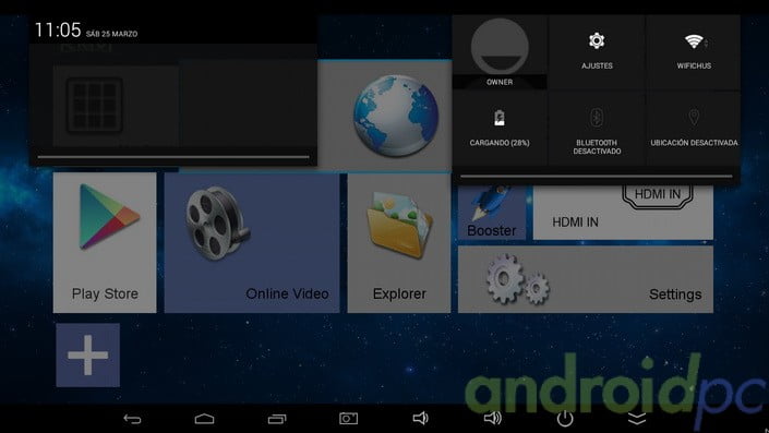 En el RKM R1 por suerte SI tenemos con barra de navegación y en la zona superior dos cortinillas de notificaciones con ajustes rápidos de Android, algo que se agradece para usar con un ratón por ejemplo.