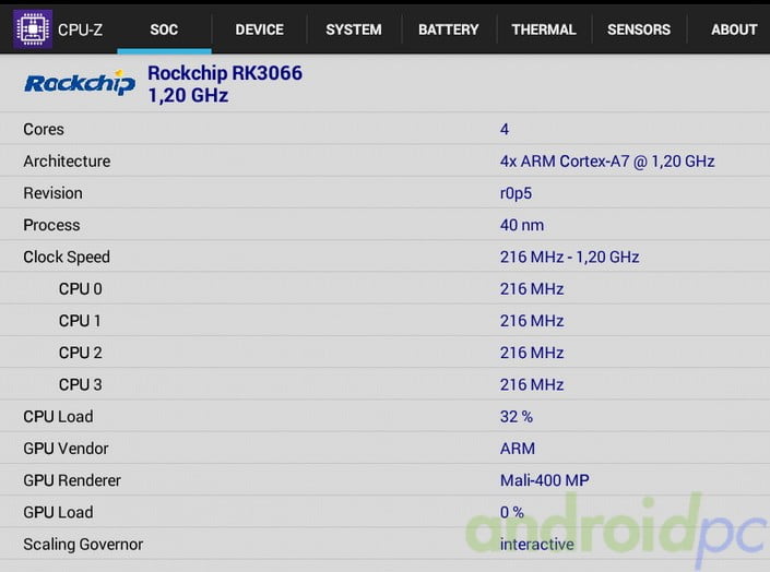 En el RKM R1 utiliza el SoC Rockchip RK3128 Quad Core Cortex-A7 con una velocidad máxima de 1,2GHz y una GPU Mali400MP2. Un SoC bastante humilde que cuenta ya con unos años a sus espaldas, aún así incorpora soporte de decodificación por Hardware para el codec de vídeo H.265, aunque nos tendremos que limitar a contenidos como máximo en FullHD ya que no es compatible con 4K.