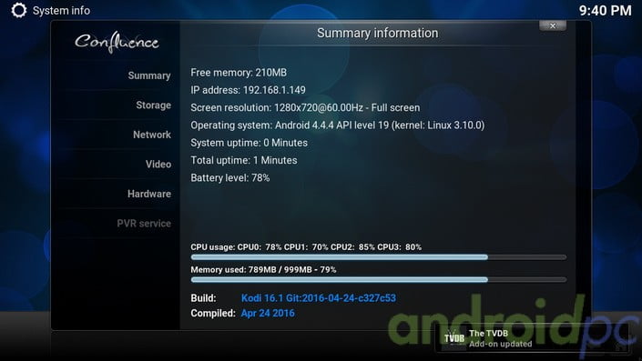 Por defecto en el sistema contamos con KODI 14 una versión bastante antigua que podemos actualizar hasta KODI 16.1 qué es la máxima que admite el sistema Android 4.4.4. También podemos usar el reproductor nativo o cualquier otro que descargemos desde Google Play.