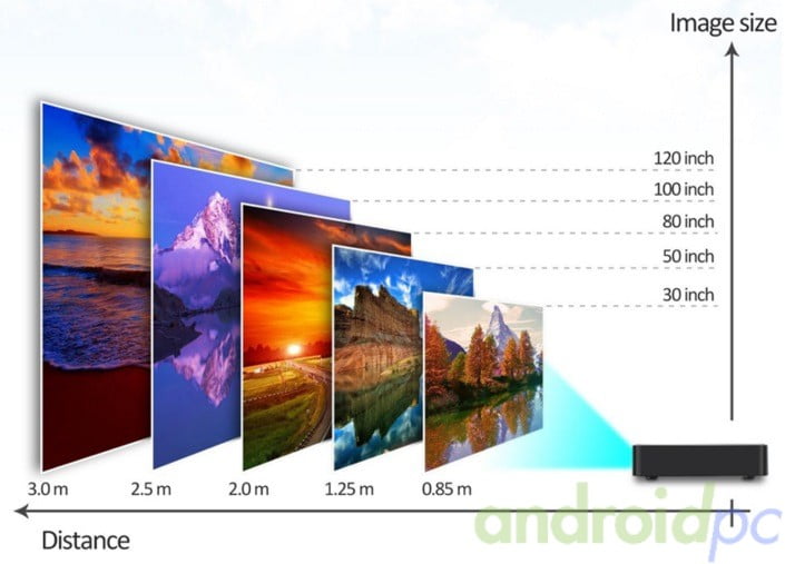 En el lateral contamos con una rueda que ajusta el foco manual, el tamaño de pantalla puede ir de las 30 a las 120 pulgadas con un rango de proyección de entre 1 y 5m.