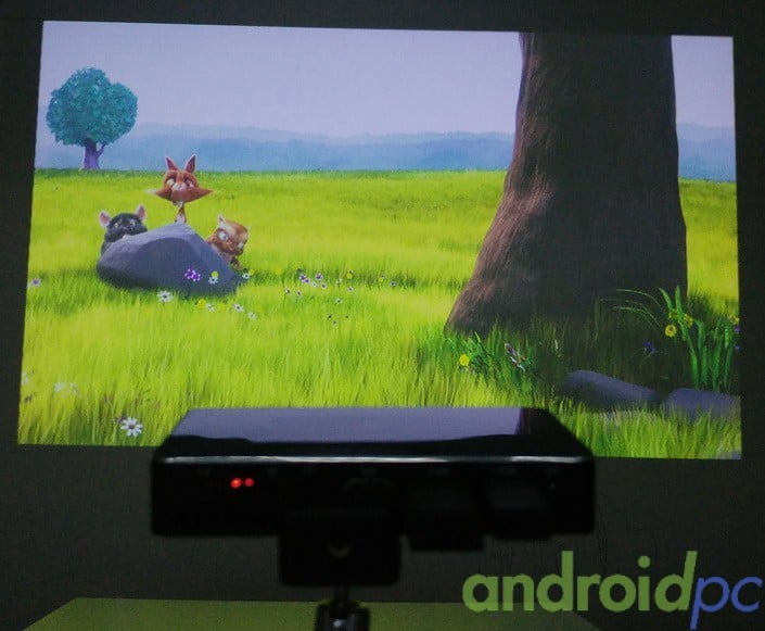 Ciertamente nos a sorprendido el RKM R1 en la calidad de imagen obtenida, el proyector DLP nos da una imagen clara y bastante bien definida para contar solo con una resolución nativa de 854×480 píxeles. La iluminación de 1000 Lumens y el contraste 2000:1 es suficiente en un ambiente oscuro y tenemos una imagen brillante, quizás los colores están algo saturados comparadas con los que vemos en una pantalla normal.